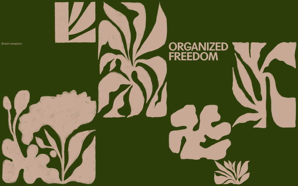 The graphic system is built around the core metaphor “Organised Freedom”: a strict modular structure (organised) within which dynamic, painterly compositions (freedom) can thrive.